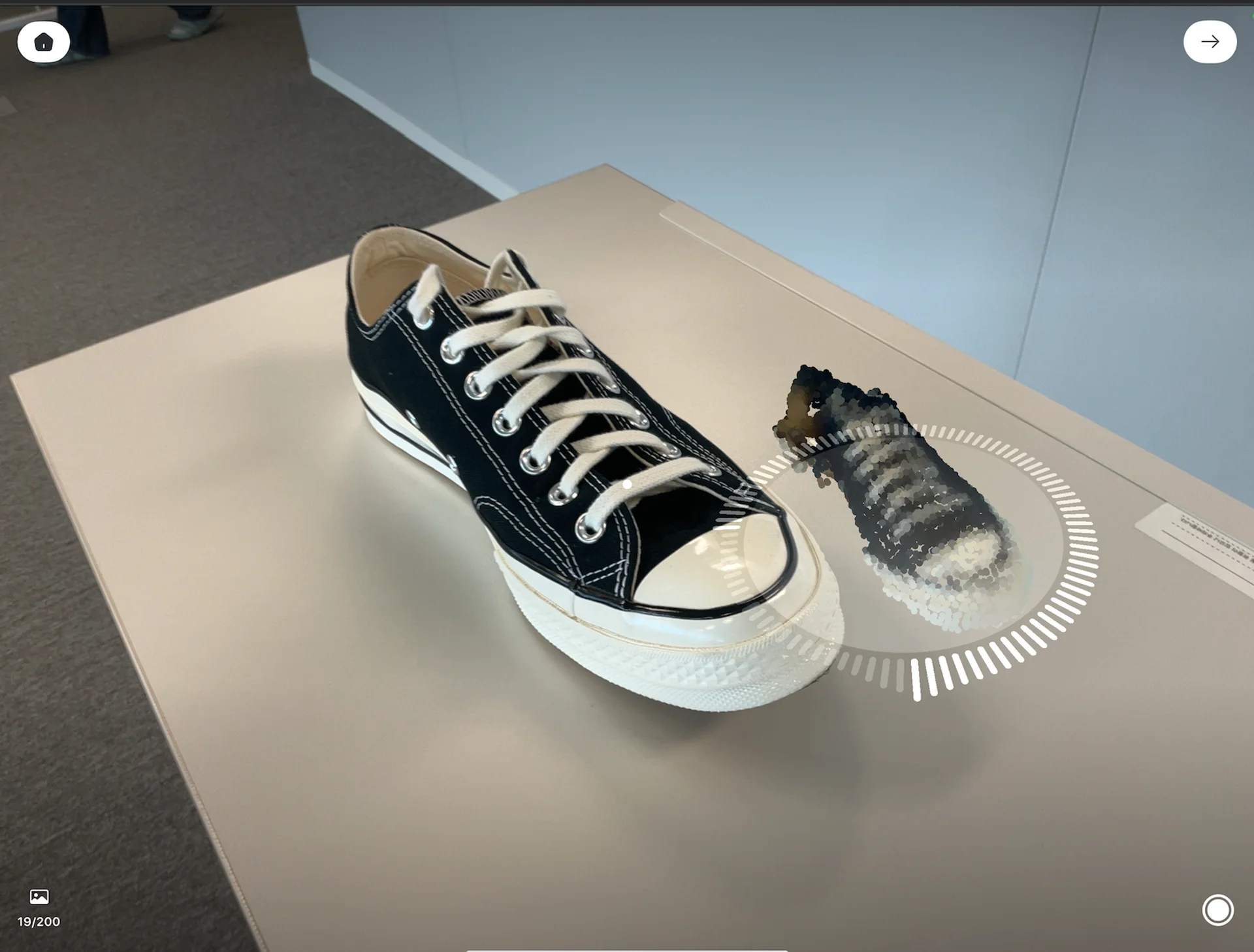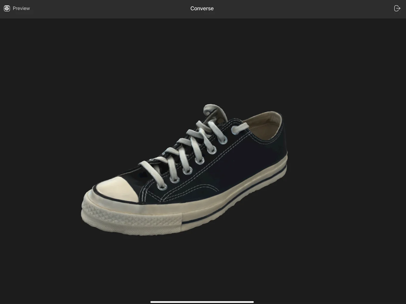 업로드된 3D 모델 파일을 확인할 수 있습니다. 복잡한 끈과 신발 내부 모습까지 정확하게 스캔 된 것을 확인할 수 있습니다.