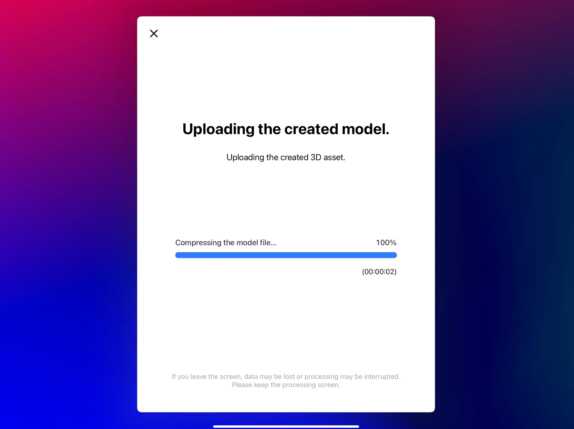 오브젝트 스캔 완료 후에는 서버에 파일을 업로드합니다.
