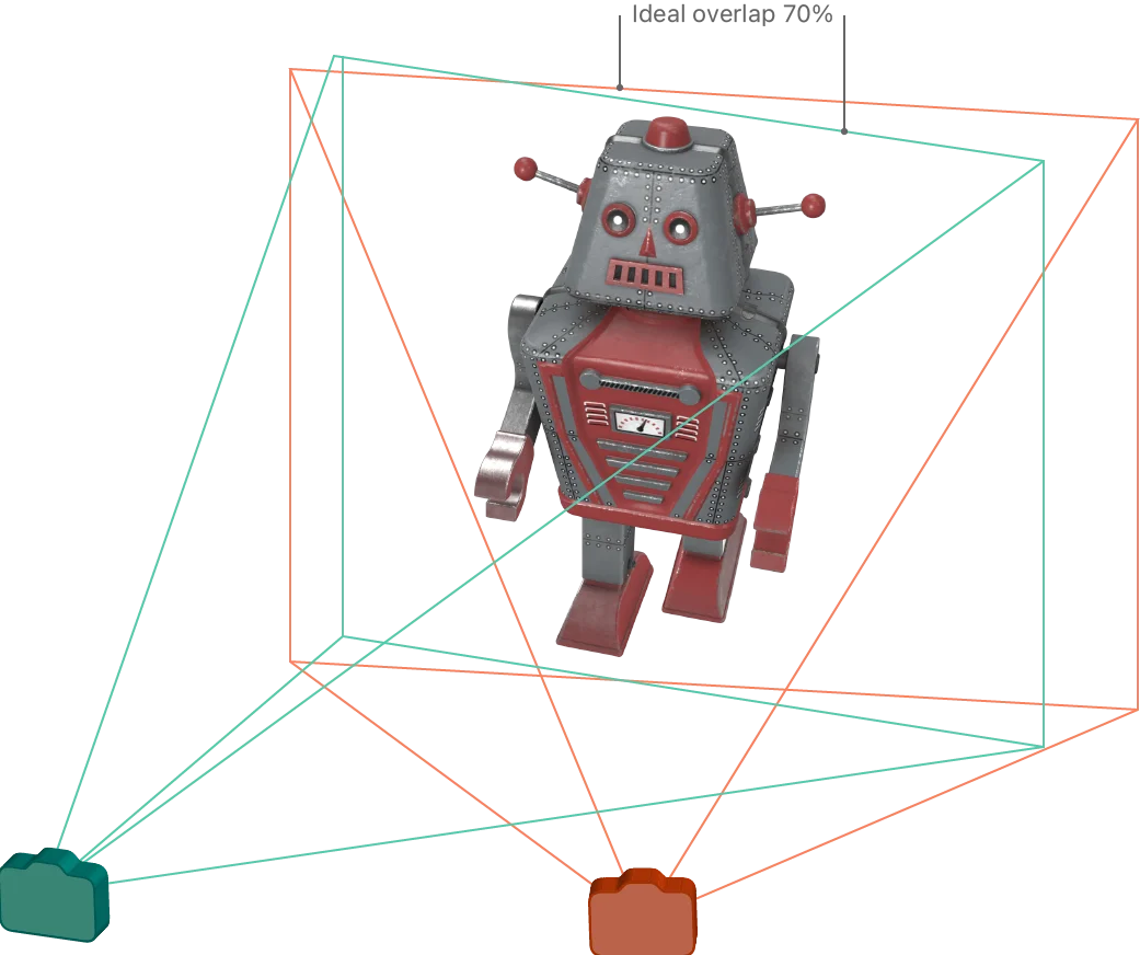 RealityKit이 정확한 3D 모델을 생성하기 위해 필요한 사진 수는 객체의 복잡성과 크기에 따라 다릅니다. 인접한 사진들 간에는 상당한 겹침이 필요하며, 연속된 이미지들은 최소 70% 이상 겹쳐야 합니다. 인접 사진 간의 겹침이 50% 미만일 경우, 객체 생성 과정이 실패하거나 저품질의 스캔 결과를 초래할 수 있습니다.