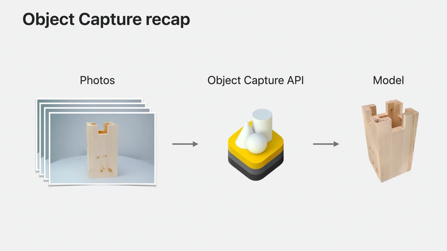 Object Capture의 핵심 기술은 Photogrammetry(포토그래메트리)이며 특히 현실 세계의 물체를 고품질 3D 모델로 변환하는 데 최적화되어 있습니다.